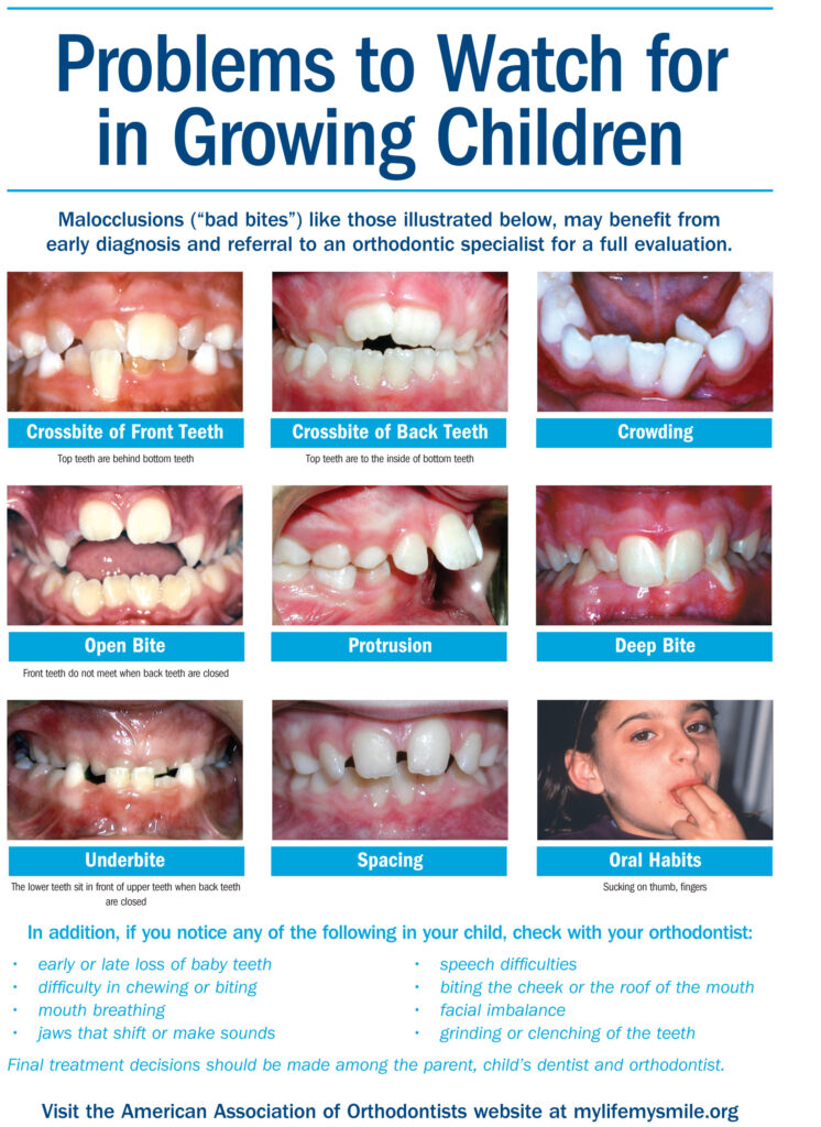 Additional information on early treatment is available at the AAO’s website. To view and/or download their handout entitled “Problems to Watch for in Growing Children” click on this link 2020PTWF_Growing_Children-reduced 1MB.
